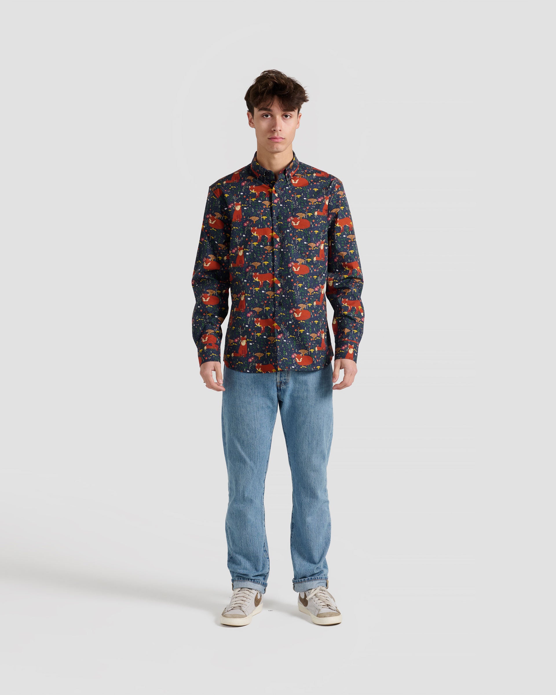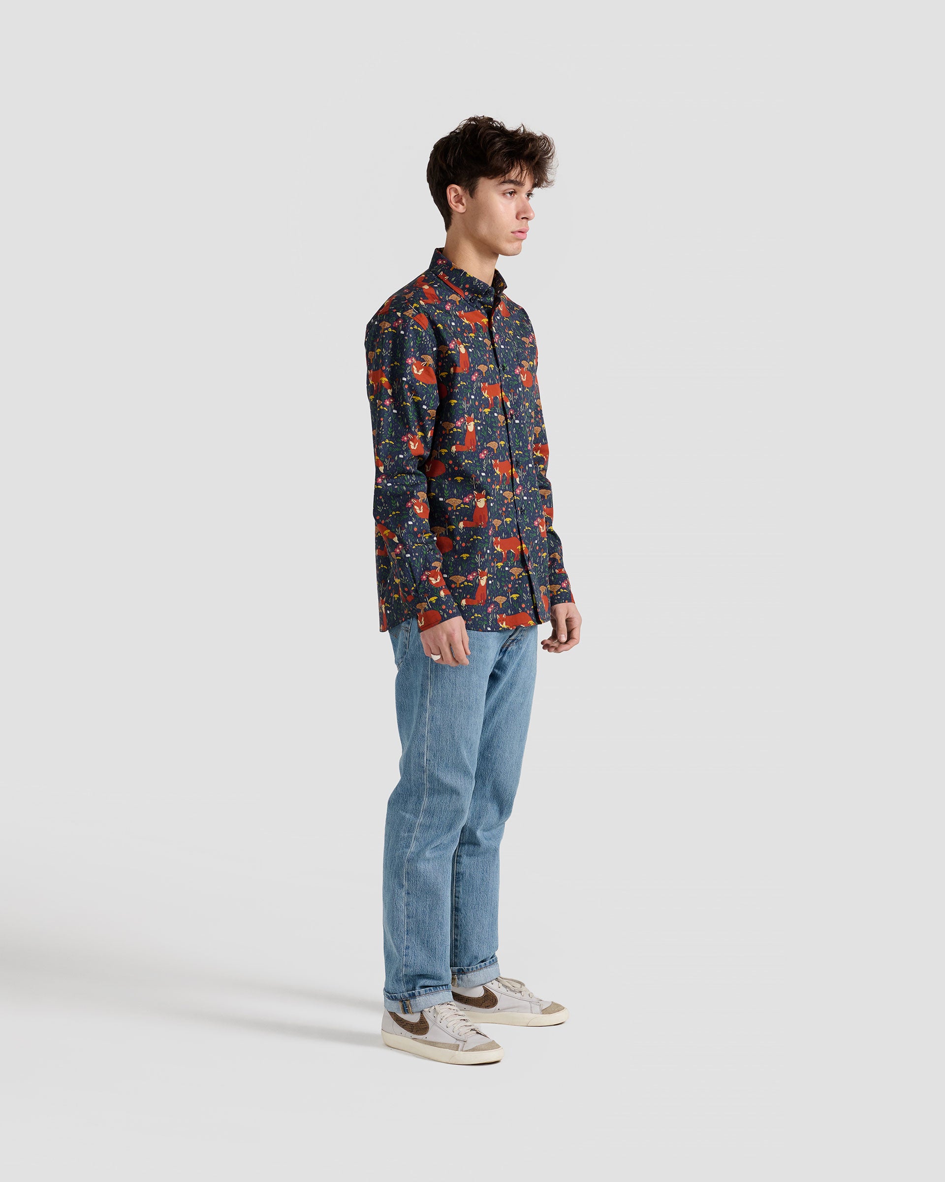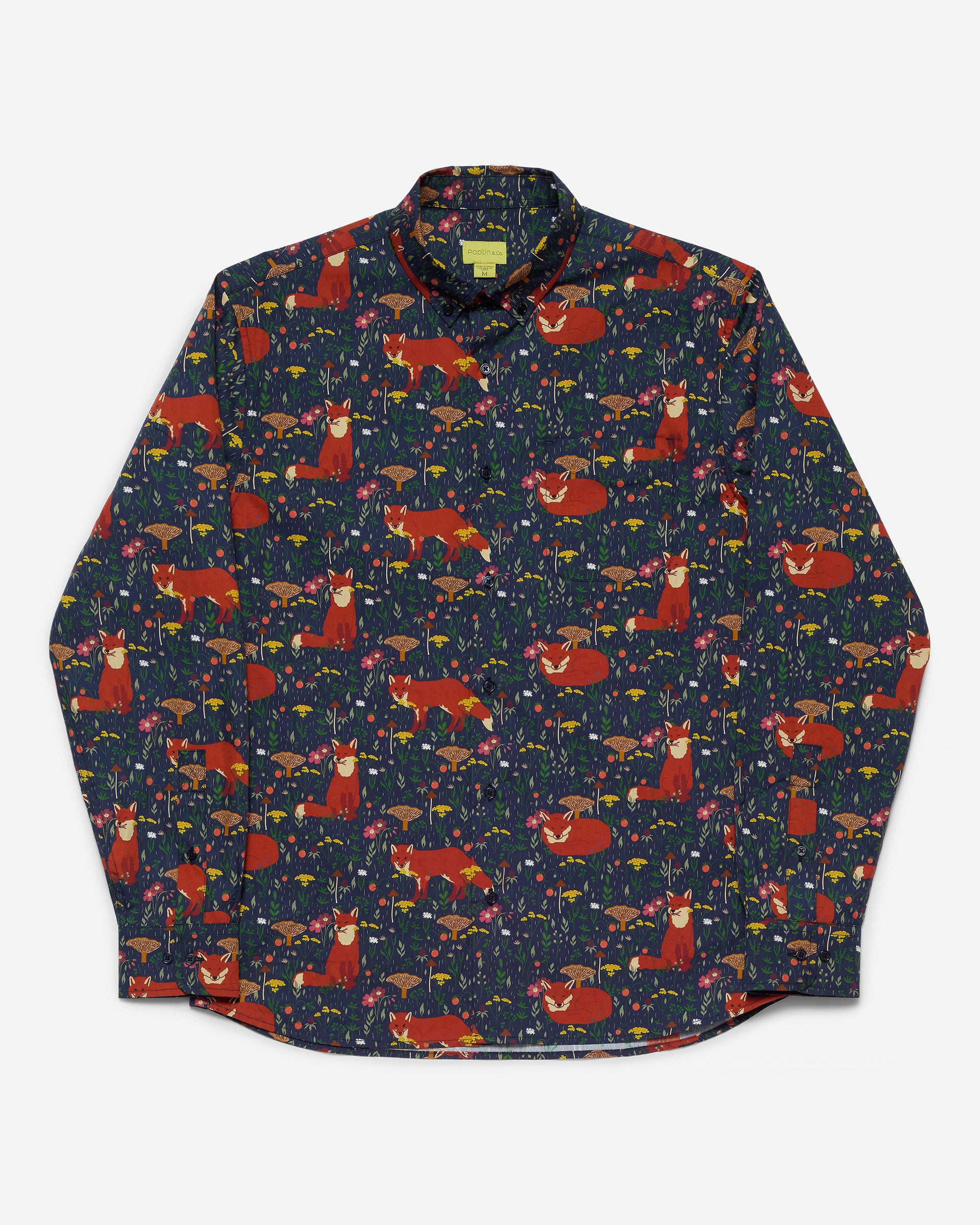 This woven true-fit shirt is made in limited quantities to reduce our environmental impact and to increase exclusivity for our customers. It features a button-down collar, button front, long sleeves, and a curved hem. Pre-shrunk for convenience, it remains smooth after machine washing ensuring the perfect fit and an incredible feel from the moment you put it on. The hand-drawn fox print is art to wear and adds a touch of casual elegance to your wardrobe.