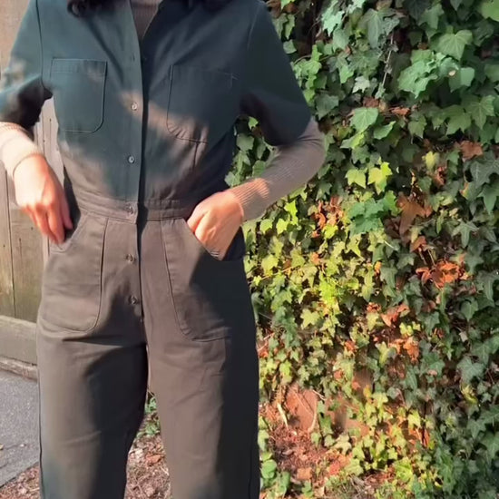 Discover our Women's Khaki Green Jumpsuit, crafted from 100% mid-weight Cotton Twill.